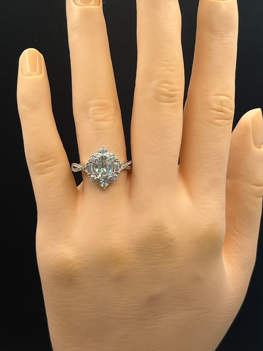 1.5 ct GRA certified oval moissanite in vintage style sterling silver ring