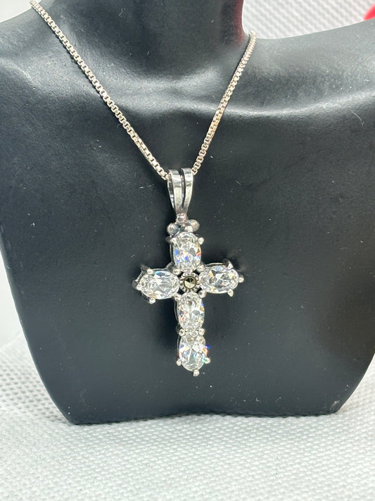 *preowned* Sterling Silver cross pendant on 18” box chain