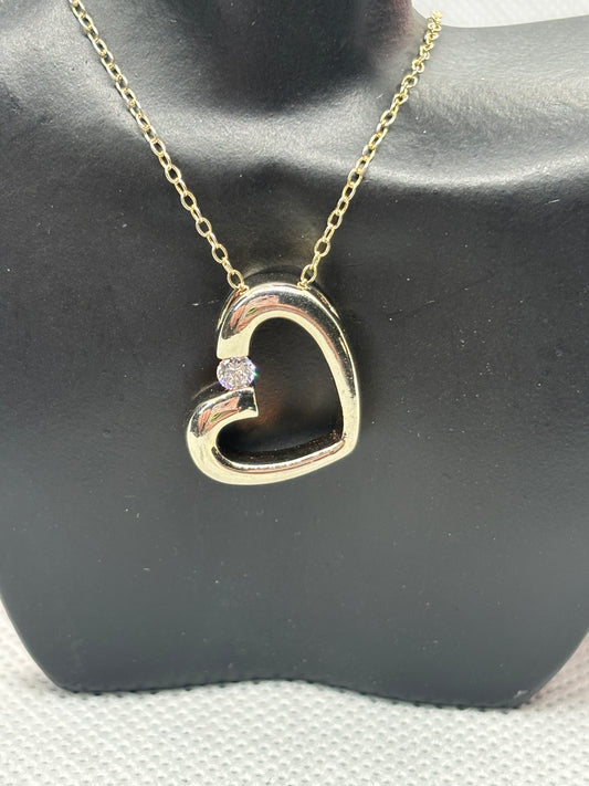*preowned* Beautiful gold over sterling silver heart pendant & 18” chain