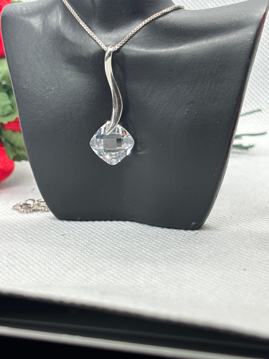 *preowned* Beautiful sparkly crystal & sterling silver pendant on 18” box chain
