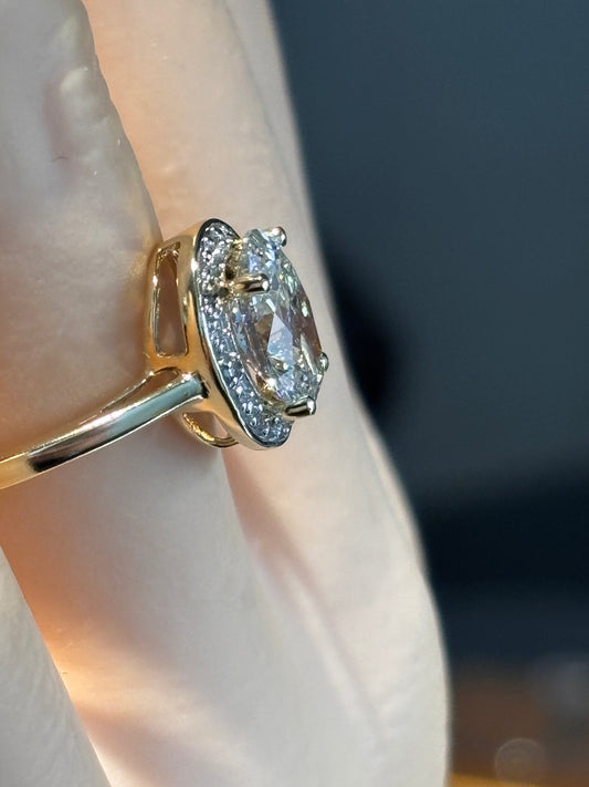 1.77ct genuine IGI lab grown diamond in 10k yellow gold halo setting, size 7