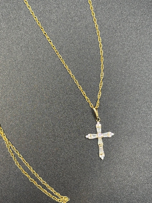 10k 18” rope chain with 14k gold & zirconia cross pendant