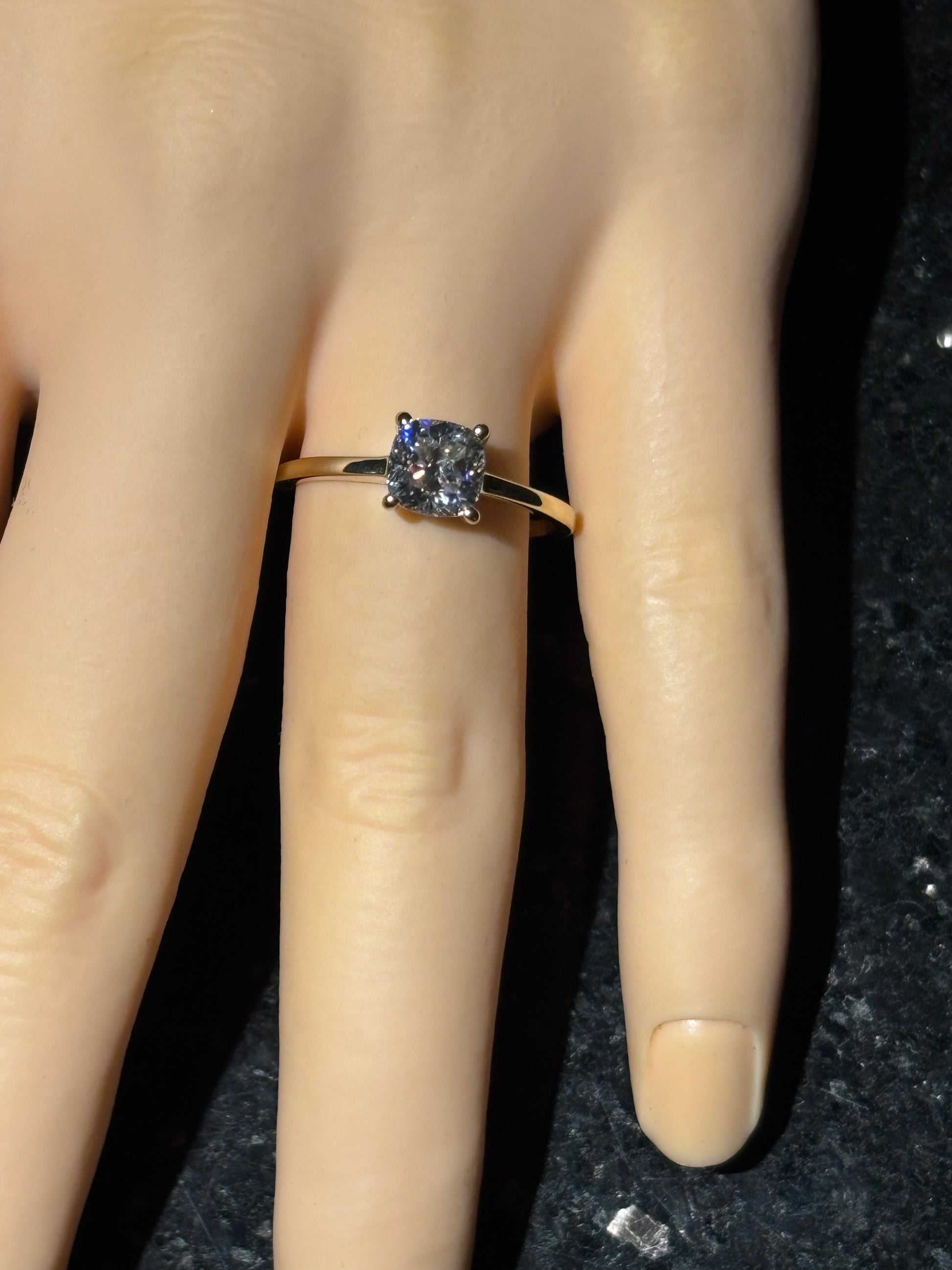 10k yellow gold ring with a 1 carat cushion cut Moissanite, size 7