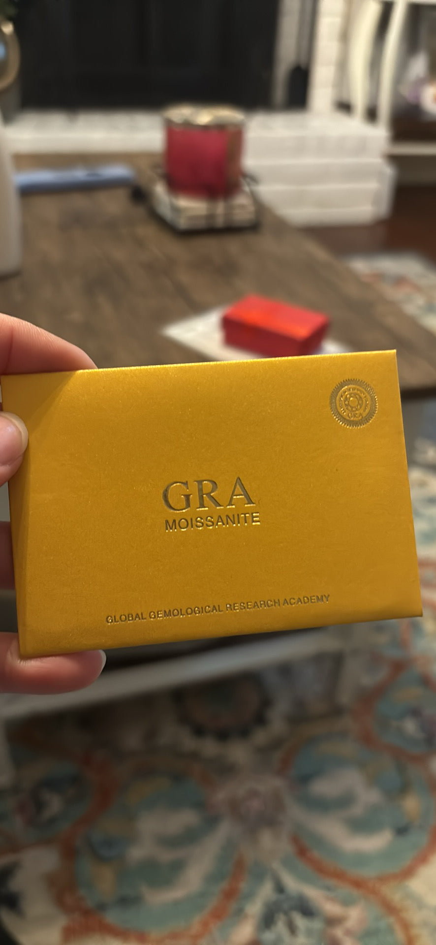 Beautiful, classic 10k solid gold band set with a GRA Moissanite. Brand new in box with certificate.