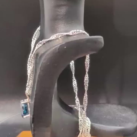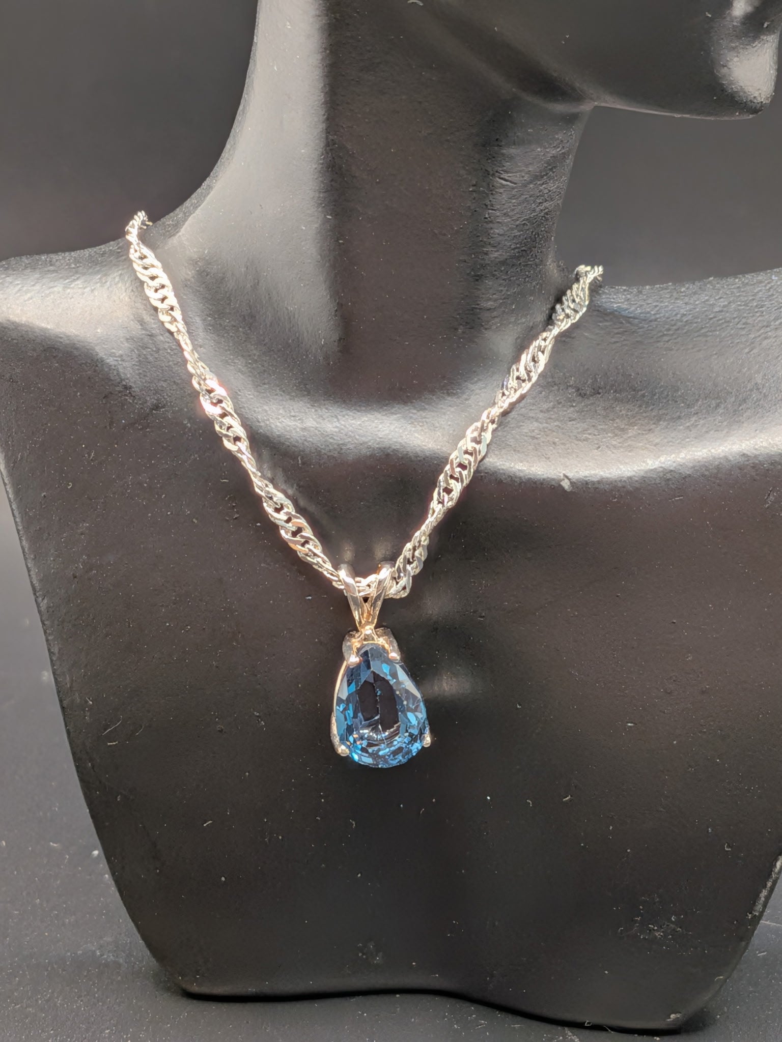 18” sterling silver twist rope necklace with aqua tourmaline sterling pendant